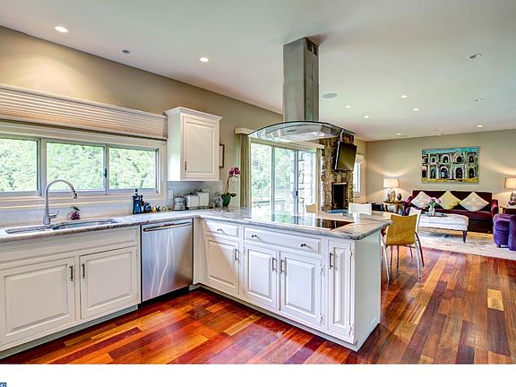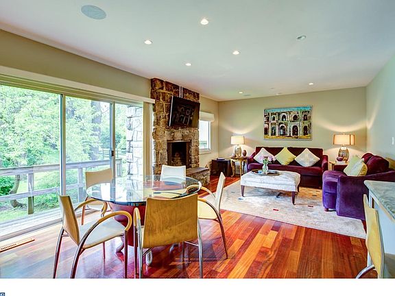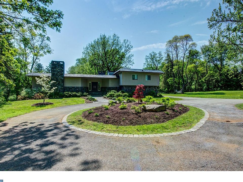 This mid-century modern house is a custom home designed by Richard Chalfonte with many updates completed by the current owner. The circular drive provides plenty of room when friends come over to visit your home built for entertaining. The open foyer gives way to the large formal living room with stone wall and wood burning fireplace. Notice the newer Brazilian cherry floors that flow through out the main level and the large windows that give endless views to the 2 acre lot. The living room opens to the dining room with corner windows that let the sun flood into this large dining space. Next is the updated kitchen with refinished cabinets, marble counters, Bosch stainless steel double ovens and warming drawer. The kitchen is open to the informal dining area with sliding doors to the back balcony and stairs, both recently re-done with TREX. The kitchen is also open to the family room with another wood burning stone fireplace. Go up a half level to a luxurious updated master retreat with spa like Carrera marble bathroom; which includes an oversized shower, large jetted tub, custom cabinetry and dual sinks. The master suite also has a generous sized walk in closet. Down the hall are two more bedrooms and an updated hall bath. Also on this level is a room that was created to act as a small study but has also been plumbed to become a convenient upstairs laundry room if the new owner wishes. The lower level has a large game room with beautiful stone wall, a third wood burning fireplace and newer slate flooring. There is also a large sliding door to the back patio and yard. There is also a bedroom which has its own sliding door and walk in closet, that has been plumbed to become a full bath as desired! The laundry room is currently on this level, as is a store room that could easily be used as a wine seller. On the garage level you will find another generous sized bedroom and updated full bath with marble shower and floating sink vanity. The oversized 2-car garage has an extra garage door entrance that offers the opportunity to be used as a cabana for the near-by pool, or storage for yard tools and toys! The 2 acre lot provides plenty of area for sports or gardens as well as an in-ground pool. All of this space, along with a convenient location ? a quick walk or drive to Greenville shopping and within minutes of the City and easy access to commuter routes - what more could you need?