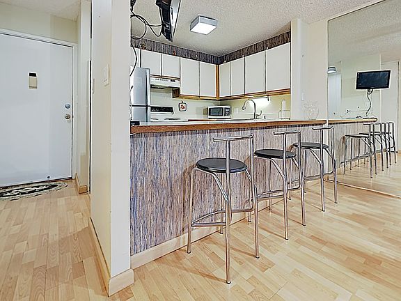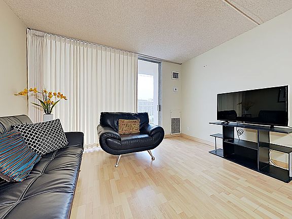 Clean, well maintained, and fully furnished 1 bedroom/1 bathroom unit with parking. Excellent location near post office, bank, food pantry, restaurant, and bake shop- all within the building vicinity. Great rooftop amenities with 24 hour security. All utilities included in rent and central AC. Photos from a previous vacancy. Offered through HomeRiver Group.