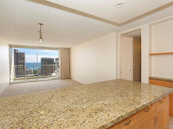 Upgraded 35th Floor One Bedroom/One Bath unit in the popular Waikiki area. Very Nice Unit! Granite countertops, tile floors in kitchen and bathroom, new appliances in the kitchen. Rent includes lanai, central air conditioning, washer/dryer, dishwasher, secure building, parking, and much more! Electric and water included. Available Now 1-Year Lease No Smoking/No Pets Unit 681 sq. ft. Lanai 58 sq. ft. Downloaded credit report with 3-digit score required.