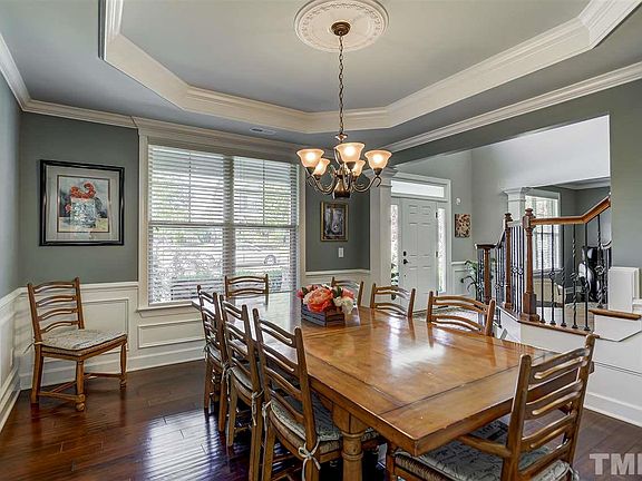 Over 6000 sq ft estate home in prime Cary location! Hardwoods throughout 1st floor. Spacious family room features stone gas log fp. Chef's kitchen offers granite tops, massive center island, custom cabs & s/s appliances. Large sunroom. 1st floor guest suite. Master suite includes tile shower w/ sep soaking tub & WIC. Huge bonus room. Lower level boasts home theatre, rec room, billiards rm, bedroom w/ full bath & fitness rm. New roof 2019. Oversized 3 car garage. Fantastic backyard w/ great wooded views.