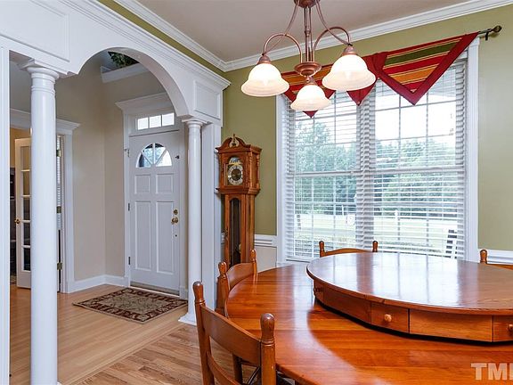 Gorgeous 5BR home with a downstairs guest bedroom, office or formal living with french doors, open kitchen to family room, formal dining room with impressive arched entry w/columns, and stunning screened porch overlooking a HUGE flat backyard for the kids or pets to play - over an acre! Large garage and extended driveway. Well maintained home with only one owner! Great neighborhood community and ideal country living! Short drive from Raleigh and no city taxes! This home is truly special, MUST SEE!