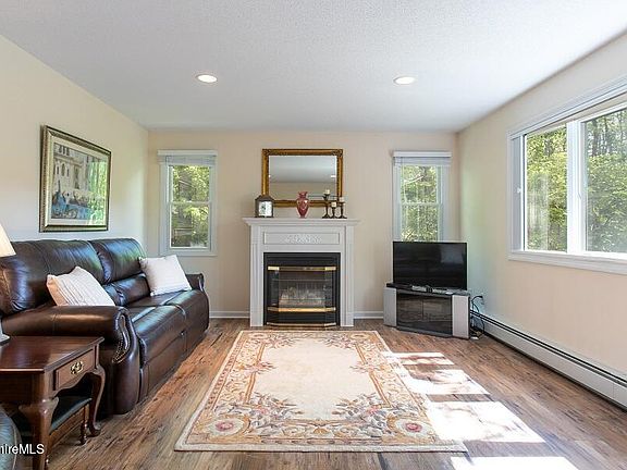 Immaculate 3 bedroom, 3 full bathroom country ranch on a quiet tree lined road. Pristine condition, meticulously maintained with direct mountain views. Upper level includes primary bedroom with full bath and walk in closet, two bedrooms with adjacent full bath. Open floor plan with dining area, custom kitchen and 3 season sunroom with access to covered terrace below. Formal living room with gas fireplace and large picture window framing mountain views. Lower level consists of a generous family room with garden terrace, full private bath, laundry, and two car garage. Walking distance to Ashuwillticook Trail bordering Cheshire Lake and Whitneys Farm,25 minutes to Tanglewood and MassMOCA.