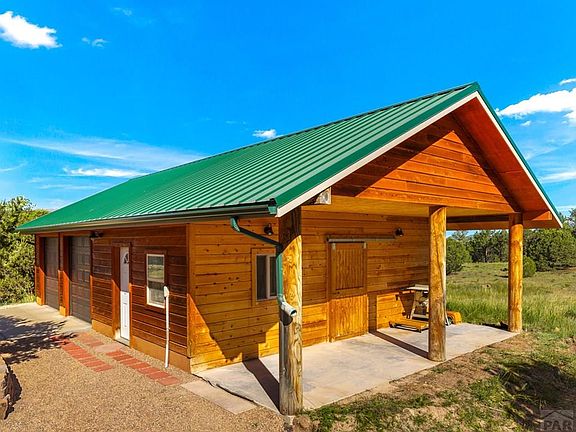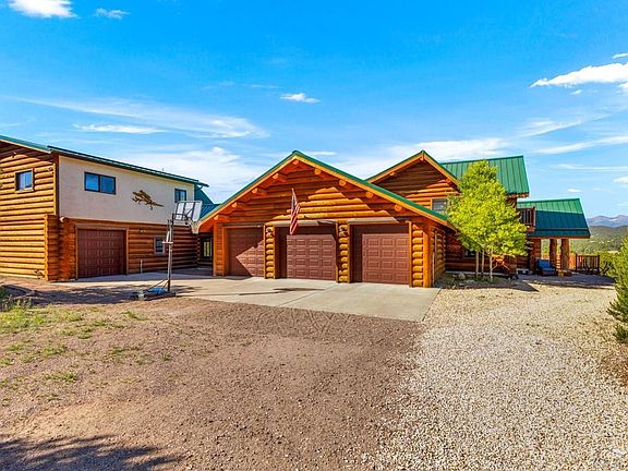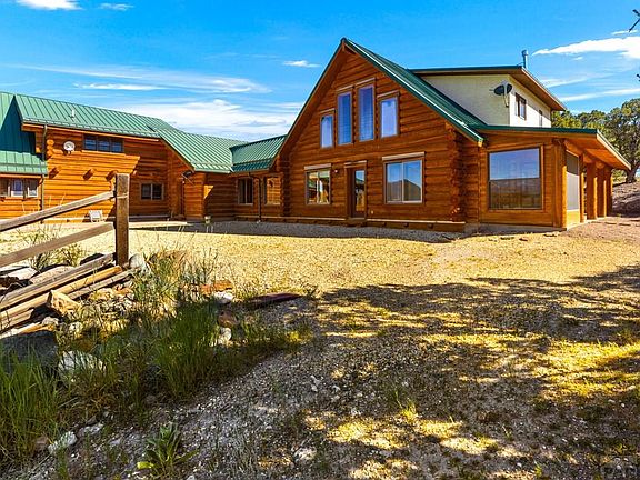 Welcome to this extraordinary log cabin nestled on 35 acres of picturesque land with breathtaking views of the Sangre de Cristo mountain range. This stunning retreat offers a $25k allowance for upgrades to coincide the blend of rustic charm and modern luxury. Step inside and be greeted by the warmth of the wood finishes that adorn every corner of this exceptional home. The 12in Milled Logs give this home a boost in the R rating and are designed to never need Chinking. With 5 bedrooms and 5 bathrooms, there is ample room for family and guests to relax and unwind in their own private oasis. The Great Room boasts a cozy and inviting atmosphere, featuring a wood fireplace and large windows that frame the panoramic views. Gather with everyone in the open-concept kitchen. Floor heat throughout the home, with 5 zones with engineered hardwood floors will keep you cozy! Indulge in the outdoors on the expansive wrap-around wood deck, perfect for savoring morning coffee, or simply taking in the breathtaking sunsets. The beauty of the landscape extends beyond the cabin, go explore from the ease of the walk-out basement. This home offers 4 attached garage spaces, providing ample space for vehicles and storage. There is a versatile shop area that could easily be converted into stables for those who desire an equestrian lifestyle. This log cabin offers an unparalleled opportunity to embrace a life of luxury, tranquility, and natural beauty. Welcome home, where everyday is a vacation!