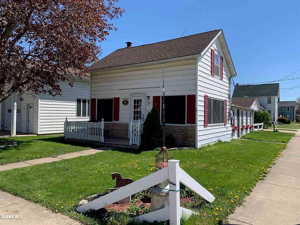 A quaint 3-bedroom, 2-bathroom bungalow with an oversized 2-car garage on a bright corner lot in downtown Hanover. The main level has newer laminate floors and a tiled bathroom, newer kitchen appliances in the refreshed kitchen and dining areas, a large living room (the large-screen TV stays!) with a gas fireplace, a bedroom, and laundry. The main level has seven new windows thermal-pane windows and solar screens to reduce the sun's heat in the summer. The two additional bedrooms and a bath are on the upper level. Outdoor spaces include front and back decks and a large enclosed porch. The current owners replaced the water heater, upgraded electric to 200amp service, added a gas wall heater to the kitchen, and upgraded the baseboard heating from hot water to electric. The shingled roof was put on in 2017. See the opportunities you have with this home!
