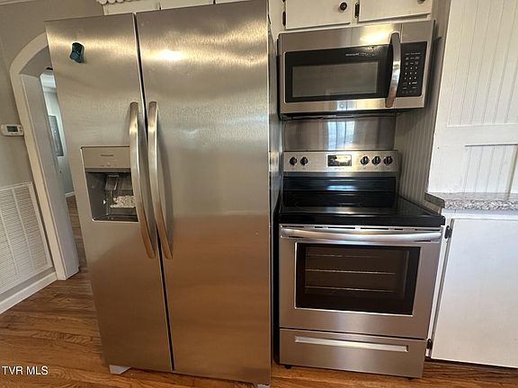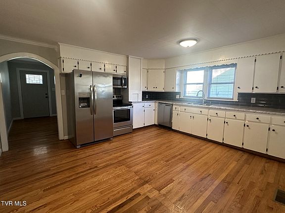 Enjoy the convenience of owning this charming home located just minutes from downtown Greeneville. This 2 BR, with an awesome walk-in-closet and 1BA has Hardwood Floors throughout, of course except the bathroom has ceramic tile. The oversized Kitchen has cabinets and more cabinets. The home was updated about 2 years ago with new wiring, plumbing, appliances, tile backsplash, all new bathroom, with a tile shower. The Washer and Dryer is located on the main level and the oversize Living Rm you will enjoy. The back yard is level, and the back covered porch is perfect for all activities. You have a great storage place in the basement, and home has public water, a public sewer and is convenient for schools, shopping, and dining.