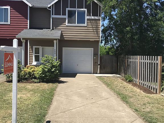 Charming 3Bd and 1.5Ba Townhouse in the picturesque town of Molalla. No HOA's. Desirable End Unit. Hardwoods and 9ft ceilings in lower level. Open kitchen; built-in microwave, range and refrig. Living room has gas FP. Carpeted floors upstairs with area for W & D. Nice master with two closets.Fenced back yard with patio and raised beds. Drip system and in ground sprinkler attach to hose line. 1-car attached garage with lots of built-ins.