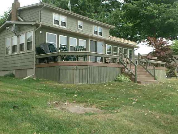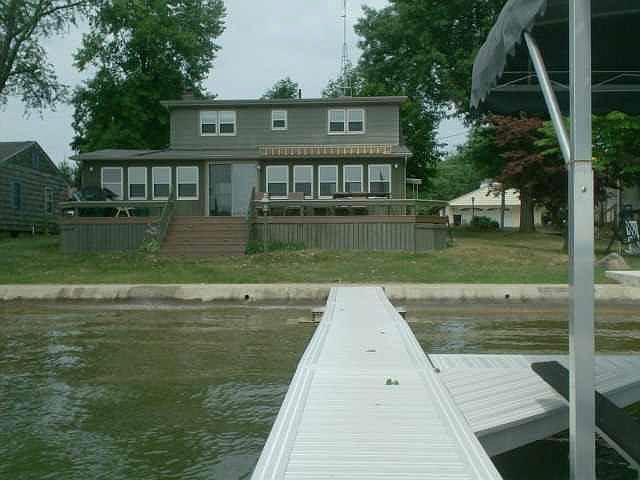 This is what a lake place is supposed to be! Everything just FLOWS from the NEW indestructible lifetime dock, to the gorgeous 60 ft of lakefront complete with a concrete sea-wall, a firm & clean swimming beach, then walk on-shore to the gorgeous lawn leading up to a ALL NEW 432 sq ft trex-deck complete with awning, which leads to a huge 480 sq ft enclosed porch w/bar & windows & glass doors galore! Then you finally get to the house! Whoa! All original knotty pine throughout has "lake" written all over it and a massive brick fireplace for chilly nights too! Walk out the back to the lawn and you'll see the paved parking for 5 before you cross the private lane to the back lot with the MASSIVE 816 sq ft garage with water & electric & enough room to park ten more cars!! IT'S THE PERFECT LAKE PLACE!!!!!!