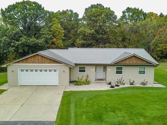 Open for admiration is this tastefully updated ranch situated in a private country setting. Perfectly placed on 1.5 acres, you'll be able to enjoy the serene wooded backdrop & still have amenities & schools just minutes away. The interior of this home highlights a functional floor plan with a freshly updated kitchen, new flooring, an amazing master suite, 1st floor laundry, & basement walk-out. Gigantic bonus garage has a separate electrical 220 service, it's own A/C unit! Exterior of property offers a generously sized garden, apple, pear, cherry, peach, & plum trees! Hurry!