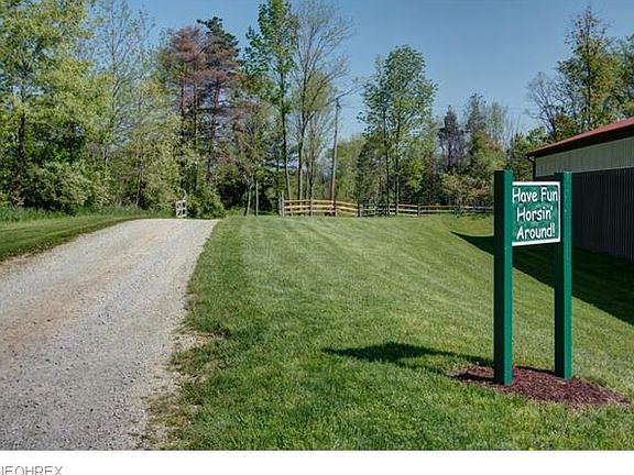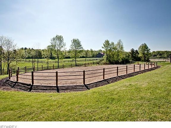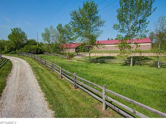 Lovely 1715 sq ft ALL brick Ranch with Horse Property has DIRECT access to Hinckley Reservation & Riding Trails across the street! Foyer opens into Formal Living Room. Both have beautiful hardwood floors that continue into hallway & bedrooms. Eat-in Kitchen & Dining Room are open to each-other. Dining room has sandstone wood-burning fireplace, with stove insert, & sliding glass patio doors to a large Deck. Kitchen has newer appliances, dark oak cabinetry, & light beige tile backsplash. It also has newer tile flooring that flows into both the dining room & the combined laundry room & mudroom area & the 2nd full bath. The 1715 sq ft part finished basement has a rec room, fireplace, exercise room/office, & workbench with storage. There's a 2-car attached garage; 23 stall stable/barn with StableComfort flooring system, automatic heated waterers, 23 lockers, hay loft with grain room & unique grain & hay drops; 120 x 70 sq ft sand-based indoor riding arena with covered walkway, heated riders lounge & viewing area; outdoor riding arena; 2 large pastures; 2 all weather paddocks with 440 Fencing; hay & sawdust storage building; 43x25 sq ft equipment barn; & small storage shed. See also 394/400 Ledge Rd MLS# 3460479