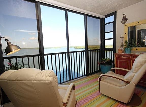 Be sure to look at this beautiful Condo, Back Up Offers will be accepted. VIEW! VIEW! VIEW! PLEASE - View the VIRTUAL TOUR first so that you can get the real impact as to the perfect location of this property. Enjoy the beautiful SUNRISE from your Lanai and then the gorgeous SUNSET from this 7th Floor Condo. This Condo is right on Estero Bay at the end of Lenell Rd. It is 4/10ths of a mile to the beautiful, widest, White Sandy Beach. Sitting on your Lanai you will be entertained with the Dolphins, Manatees, Boats, Jet Skis and Kayaks and Tour Boats that go by. The Condo is beautifully decorated, professionally designed, a true Florida peaceful beach feel. Condo has been renovated, has 18" Diagonal Tile throughout condo and Lanai. Please request copy of list of all upgrades and partial furnishings included. Shutters on all windows. Hurricane Sliders on Lanai. A/C and Hot Water heater new in 2013.