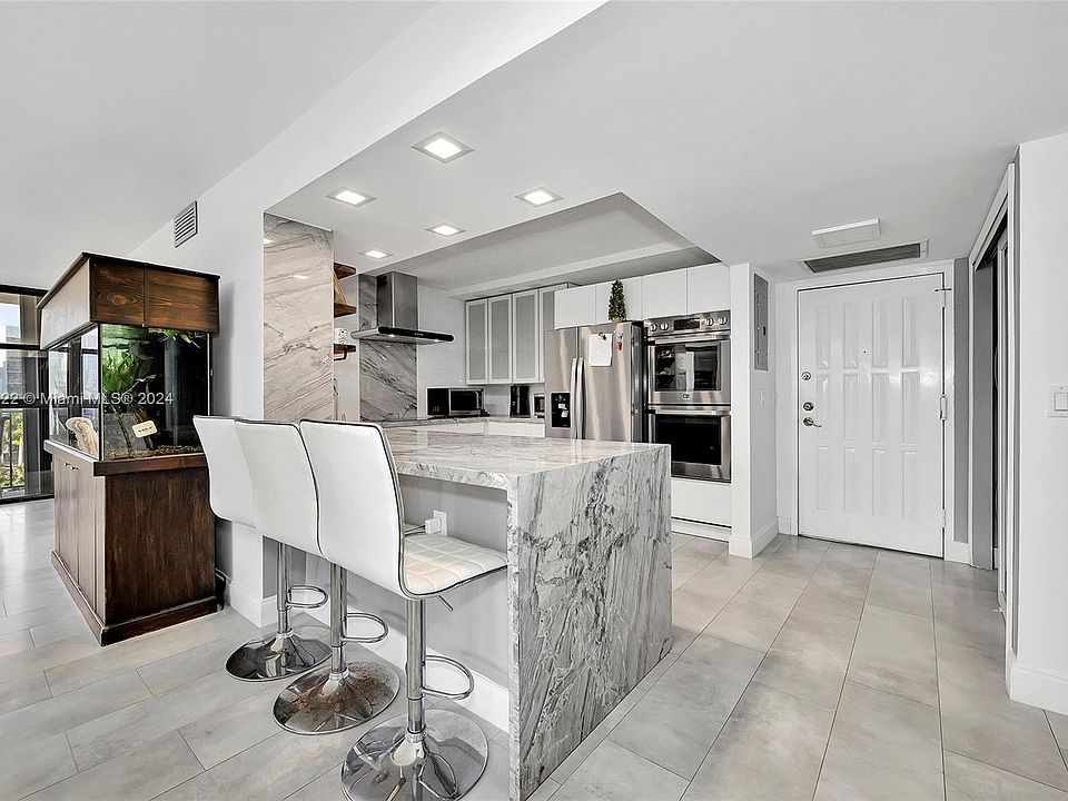 WATER VIEWS FROM EVERY ROOM! Beautifully updated 3-bedroom unit on the intracoastal! Waterfront condo located in the Three islands area. Amazing open kitchen with island and newer appliances. Beautiful uniform flooring, floor to ceiling windows to allow natural light in. Unit offers a spacious updated layout, walk in closet, and large balcony to enjoy the intracoastal view. Washer & dryer in unit! Pets allowed and rentals allowed after two years. Building is located on a quiet street, with minimal traffic or noise. Full-service building with gym, tennis courts, heated pool, sauna, BBQ, library and kids play area. Location is excellent. Close to the beaches, airport, restaurants and much more!
