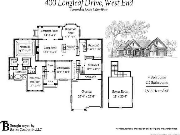 Stunning cottage home being built in 7 Lakes West! Nestled on a beautiful lot that's just under an acre, this home and community will offer it all! Inside provides an open concept with formal dining room to your side as you enter into the foyer - Great Room with fireplace and access to screened porch - Kitchen with beams, large breakfast nook, granite counters. Master Suite spans the width of the home - trey ceiling, two walk-in closets, separate vanities, private commode room, soaking tub and walk-in shower. Guest 3 other large sized bedrooms, a full guest bathroom and power room on the main level. Large Utility/Laundry room with drop zone gives access to 2 car garage with storage space. Huge Bonus room with endless possibilities! Your dream home is being built in 7LW!