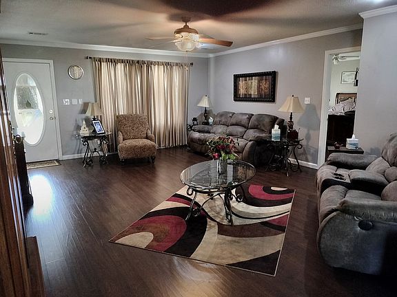 Corner lot, split bedrooms, includes appliances (approx. 3 yrs old), covered patio, LOTS of closets, separate utility room, quiet neighborhood, Highway frontage, tile/laminate flooring. The satellite view on Zillow is wrong.