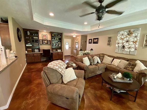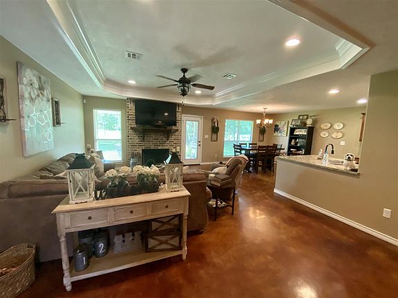 Just as cute as it can be!!!! Located in HJISD, this little jewel is down Old Beaumont Rd past the school and is only about 4 years new! Stained concrete flooring, all granite countertops, stainless appliances and so much more! Large den has a built-in office area with bookcases on the back wall. Wood-burning FP, lots of windows look out to oversized yard, backing up to neighbors land that you just get to sit and enjoy! Primary bedroom is extra large and bath has a huge walk-in shower! Nice closet space. 2 extra bedrooms and a nice walk-in laundry room with pantry. Dog Run, Large yard with lovely trees. Extra drive parking.