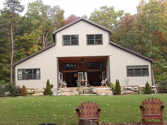 Magnificent home with spectacular bluff views, setting on almost 12 acres and the lot beside it, which has bluff views as well could also be purchased for an approx 20 acres total. Home features 2 bedrooms and a loft with knotty pine on walls and ceiling with wood work threw out . Kitchen attributes include quartz counter tops, stainless steel appliances, a beautiful island and a separate prep room. Relax in this spacious living room with tile floors, cathedral ceiling and wood burring fire place. Your back patio is just amazing with the stone work and unbelievable views. Outside features a smoke house, rock bluffs, landscaping, trails through out the property, a nice pond, hardwood trees, county road frontage, and a swing over looking the views that you could set all day out ther Great place to have a barbecue. This is a must see! Mildly restricted to keep home values up.