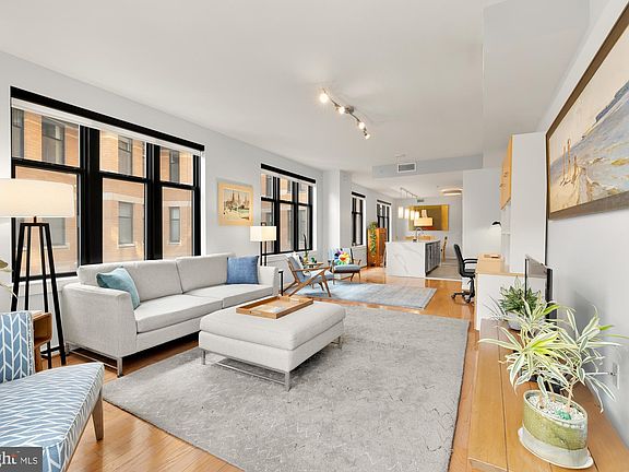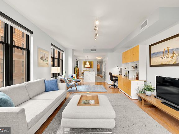 Welcome to 400 Mass - one of DC's premier condominiums in the heart of the city! Unit 1008 is an exceptionally large one bedroom, one and a half bathroom home at 1,250 square feet that could easily be converted to a sizable two bedroom, if desired. The home highlights include a stunningly renovated kitchen as well as upgrades to both bathrooms. The current owners have invested over $70,000 in improvements. You enter the home to a bright entry foyer that features a generously sized coat closet. A long entry hallway separates your living space from the building hallway and provides a perfect spot to showcase your artwork. A gorgeous half bathroom supplies the perfect space to also house your LG WashTower washer and dryer with extra laundry storage. The oversized living spaces feature a separate, windowed dining room (a rarity in downtown condo living) with space for a table and chairs, and sideboard/hutch. The updated kitchen is filled with light from three windows and offers ample counter space with under cabinet lighting, a large waterfall stone kitchen island with seating and deep sink, beautifully painted cabinetry, built-in microwave, stove, dishwasher, refrigerator with ice maker, and separate pantry. The expansive living room offers abundant space for entertaining, relaxing, and working in a separate home office. Walls of windows on two sides ensure sun-bathed spaces. This space could easily be divided to create a second bedroom with enough space to still offer a comfortable, bright living room. The primary bedroom suite is a private oasis featuring a relaxing bedroom with space for a king-size bed, seating, and furniture. The en-suite renovated bathroom offers an oversized vanity and counter, beautiful walk-in shower, and large walk-in closet. Unit 1008 includes a garage parking space. If additional storage is needed outside the unit, the building offers storage for rent. 400 Mass is a full-service pet-friendly residential building that features a full-time front desk concierge (24/7), on-site manager, large fitness center, and community room with pool table, foos ball table, and kitchenette. A separate business center offers residents desks, and chairs along with a printer. The roof deck is one of the most expansive in the city and offers residents stunning views of the Washington Monument and U.S. Capitol plus an inviting swimming pool, gas grills, seating areas, and a community garden. There is also a dog run / pet relief area just outside of the building. This location affords owners close proximity to some of the District's top restaurants including L'Ardente, RPM Italian, Kinship, Zaytina, and Del Frisco's Double Eagle Steakhouse, as well easy Metro access at Gallery Place / Chinatown, Mount Vernon Square / Convention Center, Union Station, and Judiciary Square. KVS Title is offering buyers a $500 credit. Welcome home!