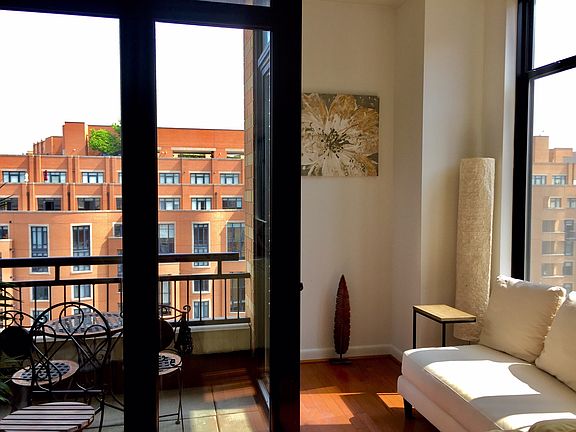 Available Aug 07, 2020. - A fully-furnished 1 bedroom, 1.5 bathroom condo on the top floor of an 11-story building, this unit has stunning views from the private balcony as well as the building's roof deck. In the center of DC's bustling Penn Quarter, the condo features hardwood floors, stainless steel appliances including a dishwasher and microwave in the kitchen, a king-size bed, a tub and shower in the full bath, a 32" TV, a washer and dryer in unit, and central air conditioning. The building has a 24-hour concierge/front desk, a sizable fitness room, a roof deck with a lap pool and an entertainment space including a grill, a business center, and a party room with a pool table. This prime spot is perfectly located for easy access to the museums, night-life, sporting, and arts events of Penn Quarter, the National Mall, Chinatown, and Judiciary Square as well as all of the amazing restaurants that can be found close by. The building is less than a 10-minute walk from a newly-built Safeway and across the street from a CVS. The Gallery Pl-Chinatown (green, yellow, and red lines) and Judiciary Square (red) Metro Stations are both an easy 7-minute walk away. A Capital Bikeshare stand is less than 200 yards away. Walk score: 96, Transit score: 100, Bike score: 83. This building requires a 6-month minimum lease. Click here to inquire about our property availability