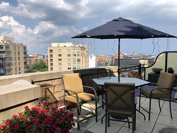 Luxury, spacious (1,475 sqft) 2BR/2.5BA penthouse with massive private balcony and sweeping downtown views. Condo has upgraded features on penthouse level. It's in a secure, modern building with gym, roof deck, grills, pool and community garden, and community party room. Close to the National Mall, Union Station, Georgetown Law School, Capital One Center, parks, restaurants, shopping, nightlife and transportation, etc. Walk score of 99 out of 100!! Floor-to-ceiling windows, hard wood floors throughout, granite countertops, stainless steel appliances, and large in-suite washer and dryer. Kitchen features granite countertops with bar area, new lighting, stainless steel fridge, double oven, glass cooktop, and microwave. Spacious dual master bedrooms with large walk-in closets and master baths. This DC gem has amazing views of the Capitol and Washington Monument from the roof deck. Monthly cleaning service included. Parking available in building for additional fee or street parking. Great Washington, DC location! About the Unit: * Modern, upgraded kitchen * Floor to ceiling glass windows throughout condo * Sunny 500+ sqft balcony * Washer/Dryer in Unit * Central Heat/AC * Ceiling fans in each room * Hard wood floors * Monthly cleaning service included. Double Master Bedrooms * Sunny 12" x 12" bedrooms with hard wood floors * Floor to ceiling window looking out onto balcony; door opens onto balcony * Large en-suite master bathrooms with tub and shower, and large walk-in closets Building & Surrounding Neighborhood * Large fitness center * Rooftop pool, sun deck, grills, dining area and community garden * Community room with pool table and wifi * 24-hour front desk and secure building access * Garage parking available for rent; some street parking * Few blocks from Judiciary Square and Gallery Place metros * Nearby Safeway, dry cleaners, restaurants, shopping, movie theater, and bowling alley Security deposit required of one month's rent. Building requires move-in application $150 non-refundable fee. Rent includes water, trash and monthly professional cleaning.