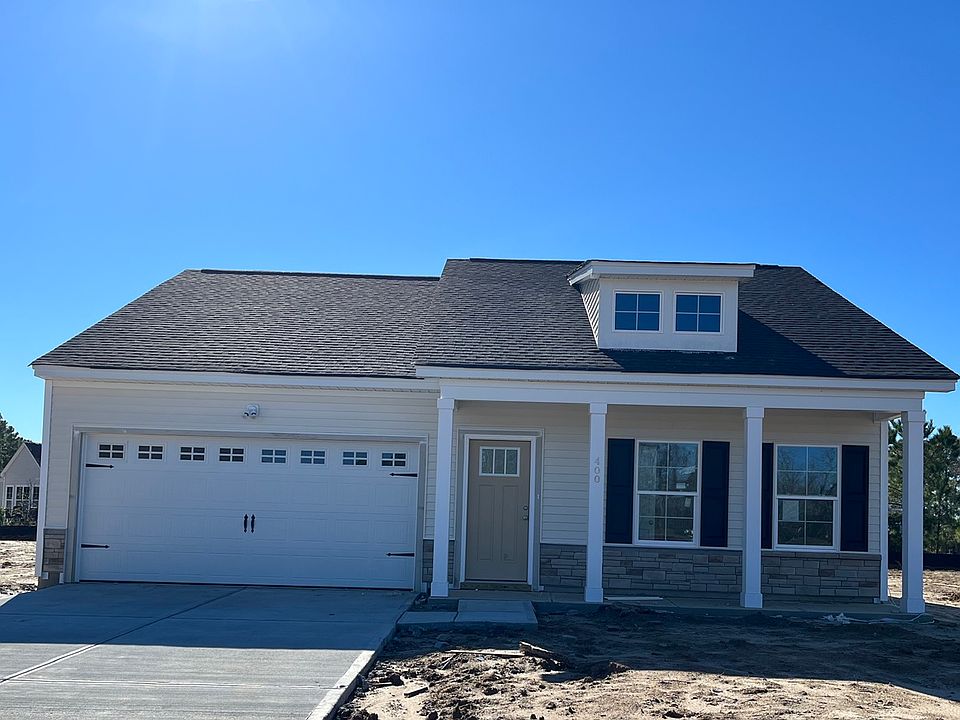 Welcome to the Abbeville where easy living is simple! From the front covered porch to the rear concrete pad your outdoor space is just as great as your indoor! Open floor plan with split bedrooms set up. The kitchen offers white cabinets granite counters and an island. Nine-foot ceilings throughout the house and vaulted in the family room and primary bedroom which bring lots of light into the house!