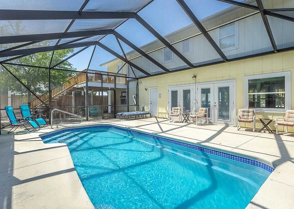Welcome to The Salty Snapper! A popular 3BD/3BR vacation rental with a PRIVATE POOL and GAME ROOM. NEW ROOF installed October 21, 2025! Located just minutes from the heart of ST. GEORGE ISLAND, this property provides panoramic BAY VIEWS, privacy, and easy access to everything the island has to offer. The home features a spacious split-bedroom floor plan, with expansive WRAP-AROUND DECKS perfect for enjoying PICTURESQUE SUNSETS with the whole family. A screened-in POOL connected to the lower-level rec room with a full bathroom provides endless entertainment options, The previous window unit in the game room has been removed and replaced with a NEW split unit for improved comfort and efficiency, while a large fenced yard offers a safe space for pets or children to play. For those with a love for outdoor adventure, the property includes a 24'x30' metal storage building with a 12' covered bay, ideal for storing boats, cars, golf carts, and other gear. Inside, the home is designed for both relaxation and functionality, with a central gathering area that seamlessly blends into the outdoors. The kitchen is a chef's dream, equipped with STAINLESS STEEL appliances, beautiful GRANITE countertops, and plenty of storage to make meal prep a joy. Located in a peaceful, NO HOA neighborhood ~ you're just minutes away from shopping, dining, and the sparkling GULF WATERS. Whether you're looking for a full-time residence, a vacation home, or an INCOME-GENERATING INVESTMENT property, The Salty Snapper checks all the boxes. The home is being offered FULLY FURNISHED, so it's move-in ready, and you can immediately start enjoying the island life or begin earning from vacationing guests. Don't miss the opportunity to see this charming beach house in person ~ schedule your private showing today! Be sure to check out the 360 TOUR @ https://www.zillow.com/view-imx/b07b6611-a5b3-4062-9334-f3cd34f10ad2?setAttribution=mls&wl=true&initialViewType=pano&utm_source=dashboard