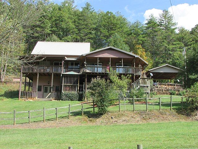MINI FARM WITH ALL THE WORKS! This place has it all and then some. Absolutely gorgeous property that fronts Hanging Dog Creek. 4BR/3.5BA on 7.45 acres w/ 3027 sf living area & additional 1396 exterior decks & porches, all on 3 levels. Beautiful open floor plan on main level w/ huge floor to ceiling rock fireplace, tongue & groove ceilings, hardwood & tile floors, tons of natural light, lower level could be made into apt. or in-law suite, amazing rec room/man cave w/ private entrance and so much more. On the property there is fenced pasture, two stocked ponds, a 3 bay garage/workshop, 4 stall horse stable and coral, chicken coop, a second barn with loft, fruit trees and garden . $389,000.