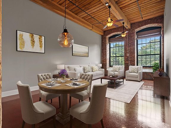 Great Opportunity! Fall in love with the past as you walk up the path to the Historic Mills Mill — where industrial charm meets modern living. Just minutes from the heart of Downtown Greenville, this cherished textile mill has been beautifully transformed into one of the city’s most sought-after residential communities. Throughout the building, original beams, posts, floors, and exposed brick preserve its rich history, while modern updates bring style and comfort to every corner. Inside Unit 203, soaring 14-foot ceilings and expansive windows flood the space with natural light, highlighting the open-concept living, dining, and kitchen areas — perfect for entertaining or everyday living. The kitchen features granite countertops, stainless steel appliances, and modern fixtures, while custom window shades and walk-in showers add a touch of sophistication. Both spacious bedrooms include walk-in closets and private baths, and an oversized laundry room provides ample storage. Recent updates include fresh paint, freshly polished flooring, and a newer water heater and HVAC. Set in a secure, gated community, residents enjoy exceptional amenities: a sparkling pool with brick patio and gas grills, fitness center, clubhouse, dog park, community garden, and bicycle storage. The monthly HOA covers water, natural gas, trash, pest control, and grounds maintenance — offering a truly low-maintenance lifestyle. Enjoy the best of both worlds: the quiet charm of Mills Mill living and easy access to downtown’s award-winning restaurants, shops, and entertainment. Don’t miss this opportunity — schedule your showing today and discover why Mills Mill remains one of Greenville’s most beloved addresses.
