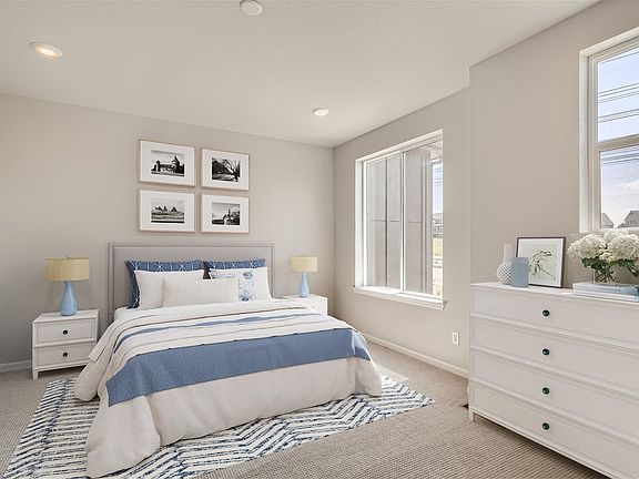The elegant Avalon plan features a smartly designed blend of functional living and entertaining space. Highlights include an expansive great room and dining area on the main level, both flowing into a well-appointed kitchen with wrap-around counters and a spacious center island. Making your way to the upper level, you'll find two sizeable secondary bedrooms with access to a full bath and a convenient laundry room. The luxurious primary suite features a roomy walk-in-closet and a private primary bath with double vanity sinks and a benched shower. Options may include: Pocket office in bedroom 2 and bedroom 3