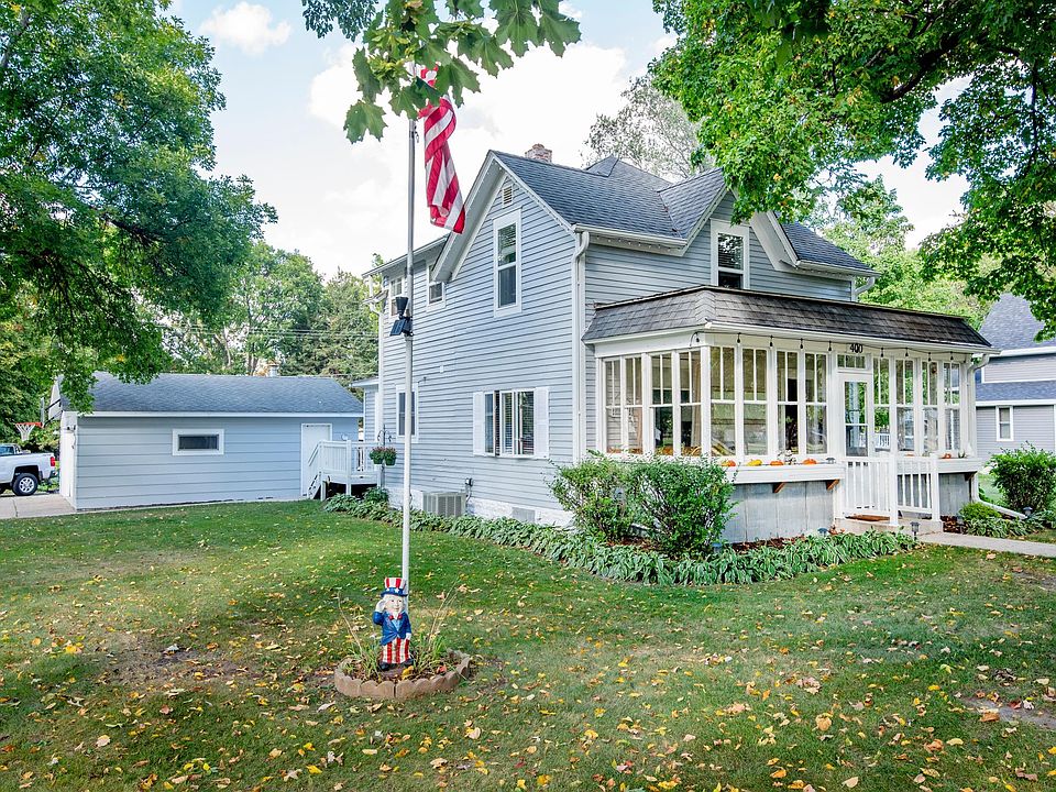 Located on a corner lot with a park across the street, close to schools and downtown. Updated throughout, fresh paint and flooring, updated plumbing, and outlets. Freshly painted exterior. Upper level has three bedrooms and a full bath. Main level has a large entry, bright kitchen, main floor bathroom and laundry. Spacious living room and cute porch. The large garage is insulated with a woodburning stove and epoxy floor great for toys, storage or entertaining. Watch the 4th of July parade from your front yard! You won't want to miss this cute, cozy home, ready for your memories!