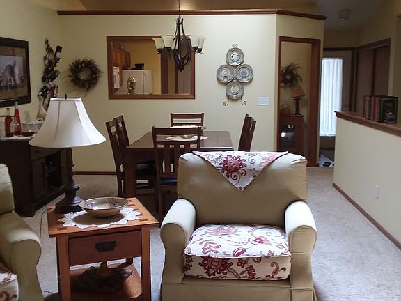 Ranch condo with vaulted ceiling, skylight, open concept living room/dining room, sunroom, 2 bedrooms, 2 bathrooms and spacious eat-in kitchen. Lower level consists of a family room, bedroom and full bath with soaking tub. A walk out patio door leads to a backyard/conservancy. Updates within the past 4 years include: furnace, A/C, water heater and softener, carpeting, flooring, dishwasher, washer/dryer, stove.