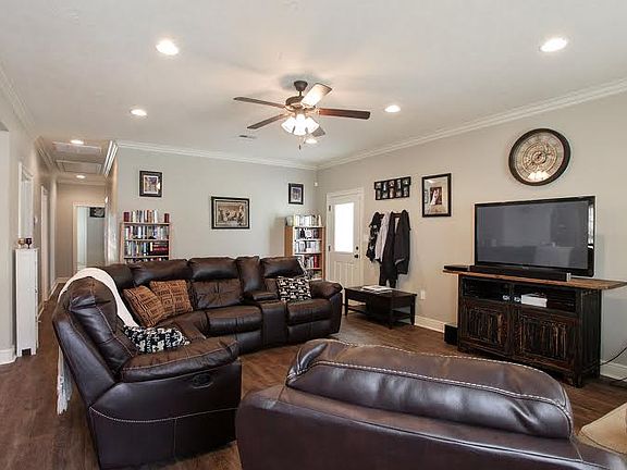 Beautiful new construction 3/2 in Moss Bluff. Nice quiet area convenient to schools and shopping. Several new homes in the area. Home features a spacious living room, large kitchen with custom cabinets, granite, neutral paint, stained concrete floors, 9' ceilings, crown molding, very large utility room, master suite with large closet, separate tub & shower. No flood insurance required on mortgage. Large lot and qualifies for 100% rural financing.