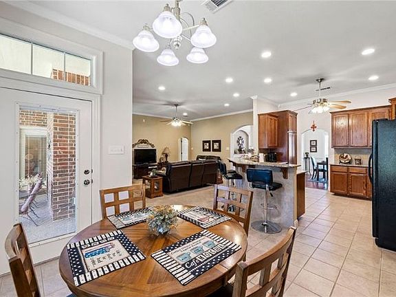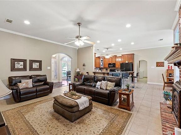 Beautifully maintained 4 bedrooms 3 bath with a 4 car garage. Dual sinks in the master and Jack and Jill bathrooms. Ceiling fans throughout. Security system all windows and exterior doors have contact points including attic stairs garage window and the single door. Wired for surround sound in the family room, dining room, the master bedroom and back porch. Programmable thermostat to save energy costs. Upgraded light fixtures and crown molding throughout. Master suite Isolated, Dual vanities, separate jacuzzi tub, separate shower, closet it has built in dresser. Kitchen Breakfast area, bar with granite countertops, under-the-counter reverse osmosis water filtration system. Exterior features Covered patio with 2 ceiling fans. Sprinkler system with wireless rain click sensor. Whole house gutters. Mailbox photo cell. Photo cell for side lights on garage 12 Volt landscape lighting. Porch wired for TV. Storage building. 4 car garage Programmable hot water heater. Flooring in lighting in the attic 400-500 square foot of storage. Insulated garage doors. 2 garage door openers. *** Electric fireplace unit does not convey.