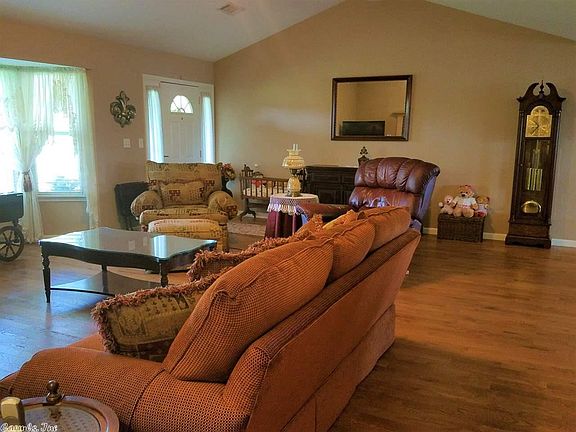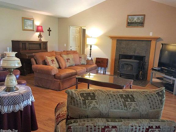 3 BR/ 3 BA Beautiful landscaped home, with wraparound deck overlooking the mountains & 3/4 acre stocked fish pond. 2700 sq ft. with 2 car garage, plus carport. Cathedral ceiling & wood burning stove in living room. Hardwood floors in living and bedrooms. Large master bedroom suite with his & hers walk-in closets. Office, sunroom, pantry, partially finished basement with 2 storage rooms, storm cellar, generator, numerous fruit trees, grape vines, and 2 large fenced garden areas. About 20 minutes from historic Hot Springs. A meticulously kept home! Just completed major updates to home which include a house generator for power outages, an alarm system, new beautiful hardwood flooring, new roof, and air conditioner Too many extras to mention.
