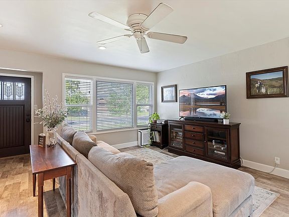 Vacant. Seller willing to pay some closing costs! Beautifully Remodeled Kitchen with Granite counter tops, farm style sink, and stainless steel appliances in an open design with an island bar. Wonderful location! Just blocks away from Elementary and Junior High School! Updated brick rambler right across the street from a park and library! Newer roof, windows, paint, flooring, A/C, and Large RV parking! New carpet in bedrooms! Main floor laundry. Basement entrance to possible ADU Studio. She-Shed in backyard has Electricity, internet, and ceiling fan! Close to shopping and Freeway Access!
