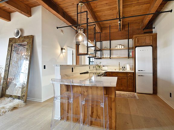 Perfectly appointed North Loop corner loft at Riverwalk Lofts. Enjoy the charm of a 1900 built warehouse just one block to the river front. Exposed brick walls, wooden posts and beams, large arched windows. Completely updated with new appliances, hardwood floors, stone counter tops, shelving, lighting, built-ins paint, bathroom vanity, tile, glass shower enclosure. This one is as good as it get!