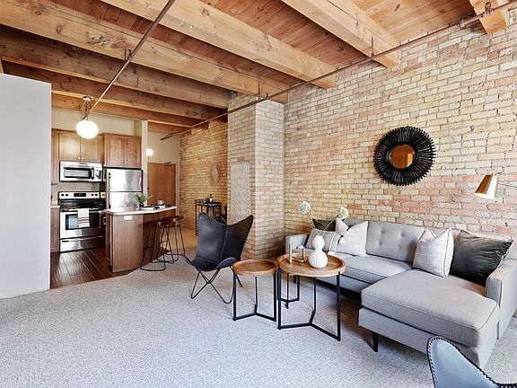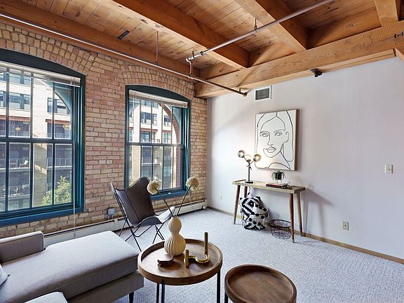 Cozy and charming space in the vintage and historic Riverwalk Lofts! This brick and timber home boasts massive windows that draw in amazing natural light, an updated kitchen with stainless steel appliances, an updated bathroom, open floorplan, and a wonderful walk-in closet. With amenities like assigned underground heated parking, and a large personal storage locker, you'll enjoy living in the heart of the North Loop, just a short distance from hot spots like NOLO's, The Freehouse, Borough, and FRGMNT coffee. As an additional money and time saver, your HOA dues cover all utilities expenses except for electrical.