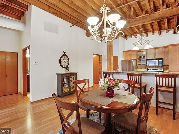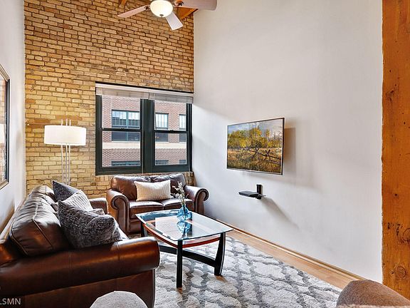 Come and see this quiet, top floor Historic Riverwalk Lofts with larger square footage. Exposed brick, wood posts and beams, extra high ceilings, granite counters, newer stainless appliances, hardwood floors, freshly painted and move-in ready & indoor heated parking. HOA dues cover all utilities except electricity. Perfect North Loop location just 1 block from Mississippi River, trails & parks. Restaurants, shops and entertainment are just steps away.