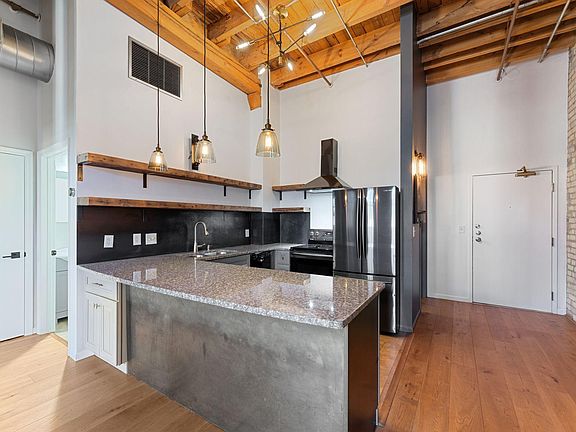 Discover urban elegance in this top-floor Riverwalk Lofts gem. Historic character shines through exposed brick, lofty ceilings, and rustic beams, while designer upgrades elevate the space with French oak flooring and contemporary lighting. The kitchen impresses with granite countertops and distinctive steel accents on both island and backsplash. Perfectly positioned just one block from Mississippi riverfront trails, this move-in ready condo offers easy access to stadiums and the North Loop's celebrated restaurant scene. Winter convenience comes standard with a heated covered parking stall. This thoughtfully updated residence beautifully balances historic charm with modern luxury in Minneapolis' most dynamic neighborhood. Experience the best of North Loop living—schedule your private showing today!
