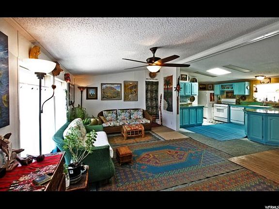 You really must see this newly renovated, super clean and turn-key double-wide manufactured home in the Grand Oasis neighborhood in Moab, Utah. This sale is for this immaculate, light-filled home only -- no real estate included. Spacious, airy, light and bright! Vaulted ceilings and skylights. All new kitchen appliances: fridge, gas stove, dishwasher, sink, water heater, washer, dryer. Uniquely beautiful custom counters. The two bathrooms have also been completed updated with new showers, tubs, commodes, sinks, plumbing, light fixtures, and new flooring. Low maintenance, cost-effective furnace you can live with in cozy winter comfort. Large bedrooms, including a master suite, all with walk-in closets... private front deck with Moab Portal views. Must see!