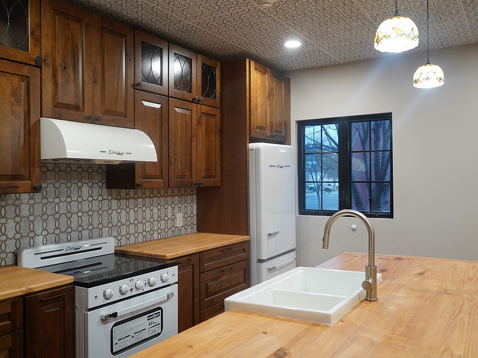 Welcome to Thiel on 9th, our exciting new historical renovation in Downtown Lafayette! We affectionately call this unit "Big Time Betty"! This stunning executive unit features 2 spacious bedrooms and 2 full baths, spread across two levels with over 2,000 finished square feet, including a main floor and basement level. Enjoy luxury amenities throughout, with fully renovated bathrooms showcasing beautiful tile, a stand-up shower, and a charming clawfoot tub perfect for relaxing. Each bedroom boasts twin vanity sinks and walk-in closets. The kitchens have each been uniquely designed, and Big Time Betty shines with its light and airy ambiance, complete with white vintage appliances, a farmhouse sink, butcher block countertops, a stylish ceramic tile backsplash, generous storage, and exposed brick walls. Gleaming hardwood floors guide you through the space, where floor-to-ceiling windows flood the rooms with natural sunlight and offer breathtaking views of Downtown Lafayette. Plus, garage parking will soon be available! Discover your future with upscale amenities and the vibrant energy of Downtown Lafayette right at your doorstep. Enjoy easy walking access to local coffee shops, delightful dining, lively pubs, shopping, community events, and a quick commute over the bridge to Purdue University.