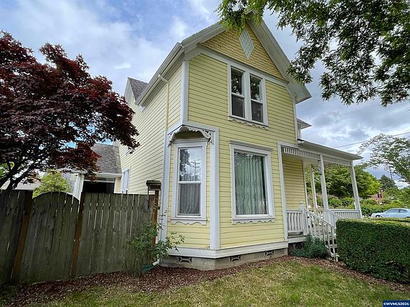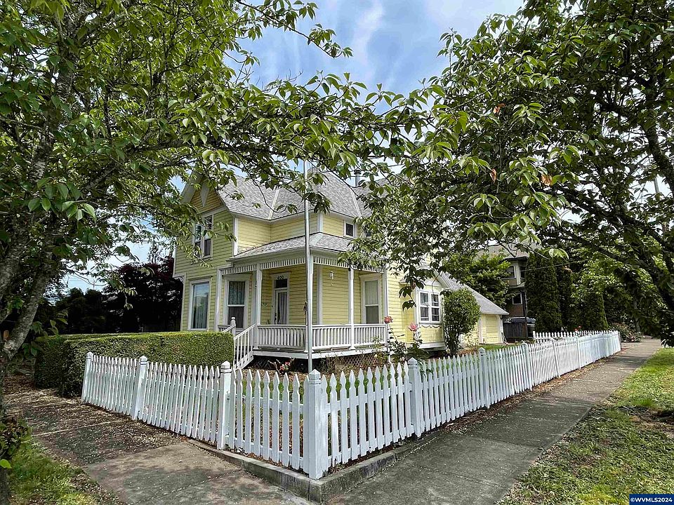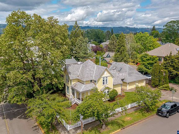 Historic gem- a 1791 +/-SF 1895 Queen Anne original in Newberg's historic neighborhood just blocks from George Fox University. Exquisite architectural details include beveled shiplap siding, hip roof with intersecting gables, charming window seat,inlaid wood flooring, two stained glass windows and transom light entry. The front parlor, formal dining room, and formal living room with marble fireplace will take you back in time to 19th Century elegance. 422 +/-SF Studio apartment above garage. 90 Walk Score