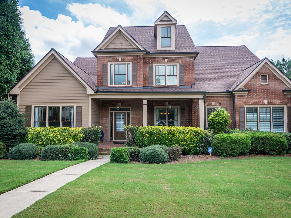Outstanding Custom Executive Home! Owner's Suite and Guest Suite on the main level. Enormous soaring ceilings & windows dressed with custom trim greets you from the massive two-story foyer. Terrace level finished with custom bar, media room, and rec room. Custom Drapes. Generously sized deck and screened in porch below w/under deck system. Private backyard but not fenced with irrigation & driveway access. Located in the exclusive "Reynolds" section. Enjoy resort style living with 2 clubhouses, pools, slides, parks, tennis, soccer, lake, hiking trails, workout facility, & trails the Etowah River.