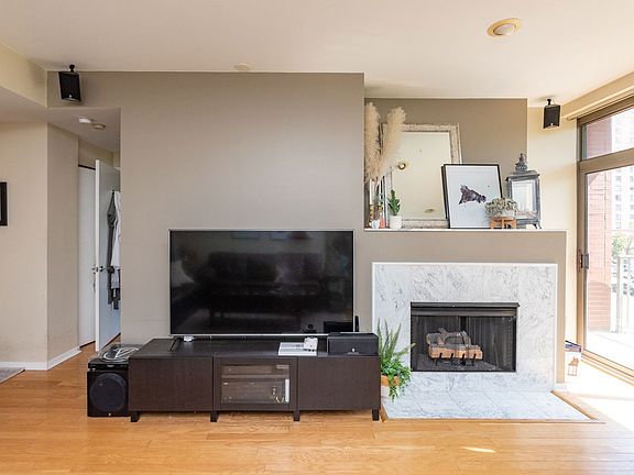 Beautiful 1 bed, 1 bath condo available NOW! This spacious unit features hardwood and carpet flooring, a modern kitchen with stainless steel appliances, granite countertops, and a breakfast bar, plus an open living/dining area with a gas fireplace and access to a large balcony. The bedroom offers ample closet space and its own balcony access, while the tiled bathroom includes a soaking tub. Enjoy in-unit laundry, central A/C and heating, and one garage parking space included. Rent covers water, basic cable, and internet. The building offers a 24-hour doorman, outdoor pool, fitness center, yard, elevator, and extra storage. Don't miss this amazing opportunity to live in the heart of River North! -- Property Management firm requires mandatory Resident Benefit Package additional $40.00 per month; includes renters insurance, positive credit reporting for on-time rental payments, identity fraud protection and more. Presented by Fulton Grace Realty, Chicago, IL.
