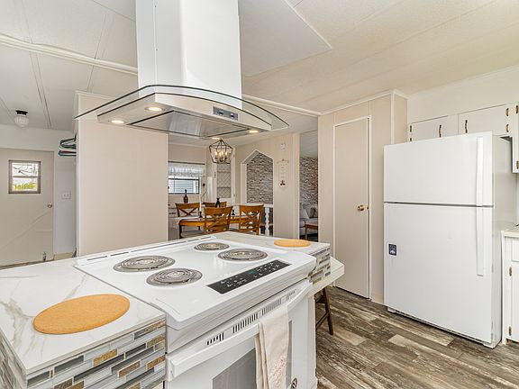 50 years or older community. Short term rental 4 to 8 month. Anytime from now through December 31, 2025. Double Wide Mobile Home, 400 N. Elinor Street, Cocoa FL 32926. Newly renovated home in 50+ community privately placed at the end of a cul-de-sac. This home is a 1983 "Homes of Merit Dutch Manor". Strong and sturdy .been around a long time! With a 1000 square feet floor plan it has a centrally located kitchen with an updated island that seats six and a dining area and table that also seats 6. The sun moves across the home highlighting the rooms with a feeling of warmth, comfort and security. 1 bedrooms with full height and width sliding mirrored closed doors. 1 full bath. Two living rooms (one has a wet bar!). Oversized lot with new screened in porch and small deck. South-southwest facing beautiful sunsets. New roof 10/13/21. Updated HVAC system with new unit installed 3/3/2017. Updated electric and plumbing meets code as well as approved tie downs (see attached documents). New tankless hot water heater installed. New exterior paint and skirting. Freshly painted interior. Newly installed flooring. New stove, dishwasher, and ceiling stove vent fan. Community amenities include: Pool, club house use with pre-booking, shuffleboard court, fishing and 2 x a week trash pickup. Background check required by park and over 625 credit score a must. Application fee ($75). Owner provides yard maintenance.