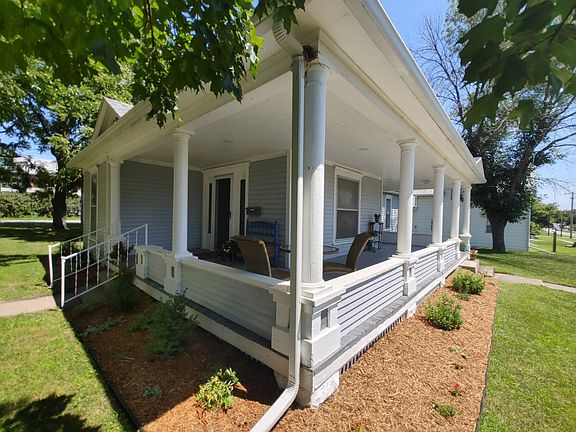 Sitting on the front porch (which is a showstopper), you can't help but enjoy the cool evening. The summer breeze meanders through the mature trees in the front yard as you listen to the distant sounds of downtown Hamilton only blocks away. The original hardwood floors and woodwork adds to the nostalgia as you enter the front door. Standing in the living room you glance over at the main level master bedroom which has a sizable walk-in closet. Not quite ready for bed, you stroll through the dining room and into the kitchen. Rummaging through the pantry, you settle on one of your all-time favorite snacks....popcorn! As the kernels are popping away in the kitchen, you make use of the time by starting a load of laundry. Thankfully the laundry room is on the main level and you are able to return to the kitchen before the popcorn is burnt. After the snack you debate on heading upstairs where you have converted one of the upper bedrooms to a craft room. Realizing there will be plenty of time for that tomorrow, you decide to wine(yes) the evening down. What a way to end the day in your new home in Hamilton, MO.