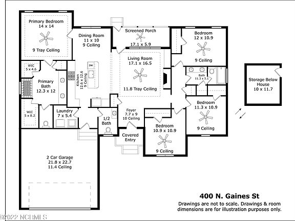 • Master Downstairs, Walk-in Closet(s), High Ceilings, Entrance Foyer, Kitchen Island, Ceiling Fan(s), Walk-In Closet(s)