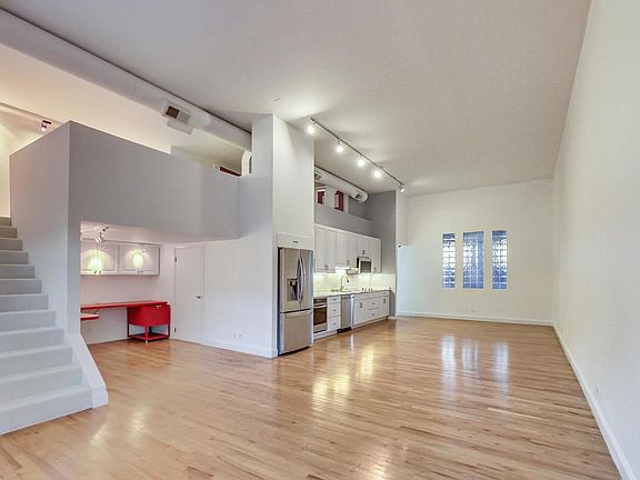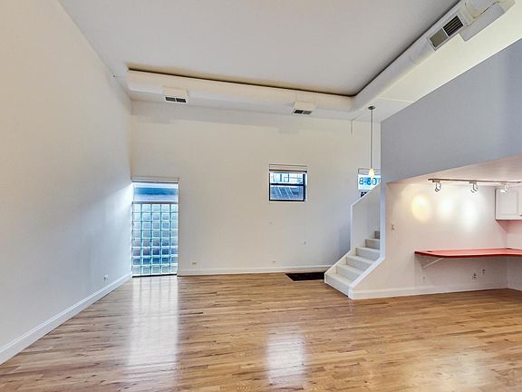 Exceptionally unique floorplan allows for customizable living in a grand, airy space that is perfectly adaptable for the work-from-home situation! Soaring high ceilings enhance the open feel and enables a bonus den upstairs - an ideal space for a lowkey lounge/guest room which also features extra storage areas. Large built-in desk sits directly next to the half bath for ease of access. Bedroom easily accommodates king size bed with plenty of closet space. Recently rehabbed kitchen and master bathroom. Brand new washer/dryer machines in unit. Ample storage throughout. Mudroom off the back door is great for storing bikes and other outdoor gear. With dedicated front and back entrances this home has the distinct feel of a private residence. Located in a gated community that sits at the confluence of Fulton Market, River West, and West Town. Easily accessible parking spot is included in the monthly rent and sits just outside this ground floor unit. High speed internet included. Check out the 3D virtual tour to get a feel for this incredible space!