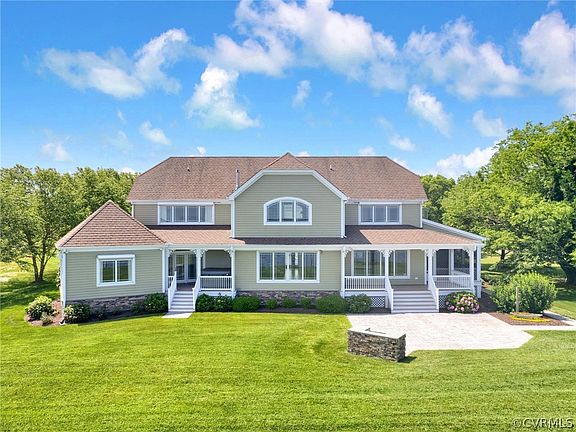 Welcome to 400 North Shore Road. This custom built waterfront home boasts 6,300 finished square feet and over 170 feet of private sandy beach, deep water, Rappahannock river frontage & just a short boat ride to the Chesapeake Bay. 165 foot private pier w/ 2 jet ski lifts & an 8000 lb boat lift! This multigenerational home is situated on a 1.58 Acre lot with breathtaking water views & is NOT in a flood zone! As you pull into the driveway you are met w/ the meticulously maintained landscaping, tons of curb appeal, the oversized 3 car garage & the stamped concrete walkway to the two covered front porches w/ metal accent roofing. Entering the home the handsome hardwoods welcome you in the foyer leading you to the spacious family room w/ expansive water views, built-in shelving, recessed lighting, gas fireplace & an open concept to the dining & kitchen spaces. The custom kitchen is a chef's dream with two islands, double oven, Wolf gas range (6 burner), glass front cabinetry along w/ a massive walk-in Pantry. The dining room is off of the kitchen with additional water views. On the main level there are two primary suites, both as potential in-law wings with their own living space & ensuite luxury baths. Two private decks & a screened-in porch allow for endless outdoor entertaining along w/ the oversized stamped concrete waterfront patio w/ built-in grill. Rounding out the 1st floor is the dedicated office & useful Utility Room! Upstairs the media/rec room features a projection screen, pool table & plenty of space for entertainment. There are two guest suites w/ ensuite baths & WIC along w/ an additional room above the garage w/ a full bath & separate staircase perfect for guests. The UNFINISHED 1,075 SqFt basement is perfect for a workshop, home gym & additional storage. There's space for a potential pool in the backyard overlooking the river! Full Irrigation system, 20KW generator, 4 HVAC, Whole house water filtration system, outdoor attached storage w/ half bath & separate shower, hurricane shutters, & so much more!