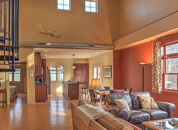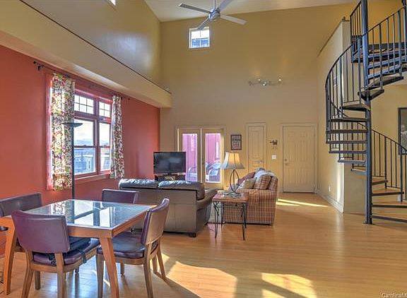 Penthouse condo with huge rooftop deck and main level balcony. High ceilings, lots of natural light, open floor plan. Almost 2000 sq feet with safe garage parking and a large lockable storage room. This condo has long range views and is walking distance to South Slope. A downtown lifestyle without the traffic, parking, noise, crowds and price. A great value and wonderful space to call home. Ideally located on the east end of downtown, this penthouse condominium offers the benefits of proximity to central Asheville with long range views, a more natural, green setting and garage parking, Memorial stadium, the new Beaucatcher Greenway, and downtown and the south slope brewery district are easily walkable.