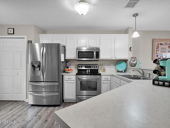 Best 3-bedroom deal in St. Johns County! No need to worry about big ticket items: Roof 2018, HVAC 2019, Screened in patio 2018- & ONE-YEAR HOME WARRANTY. Move-in ready, charming home with bright open floor plan featuring the kitchen overlooking dining/living area combo and powder bath downstairs with storage. Luxury Plank Floors on the first level, Luxury Plank Flooring upstairs hallway, and on the Staircase! Beautiful Kitchen with Upgraded painted white cabinets, Dishwasher and Microwave. ALL APPLICANCES INCLUDED - Refrigerator in garage, and the Washer / Dryer. The sliding doors lead to screened-in lanai which is the perfect private space for entertainment & relaxation. Upstairs, you'll find a large hallway with three bedrooms and a bath. The primary bedroom includes a walk-in closet , shower and double sinks.Multiple POOLS, Fitness areas, and sports fields, and much more! This is care-free living - the HOA manages the Lawn and some exterior home maintenance. Assigned to some of the Highest Rated Saint Johns County Schools! Hurry in Today, this awesome home will not last long on the market!