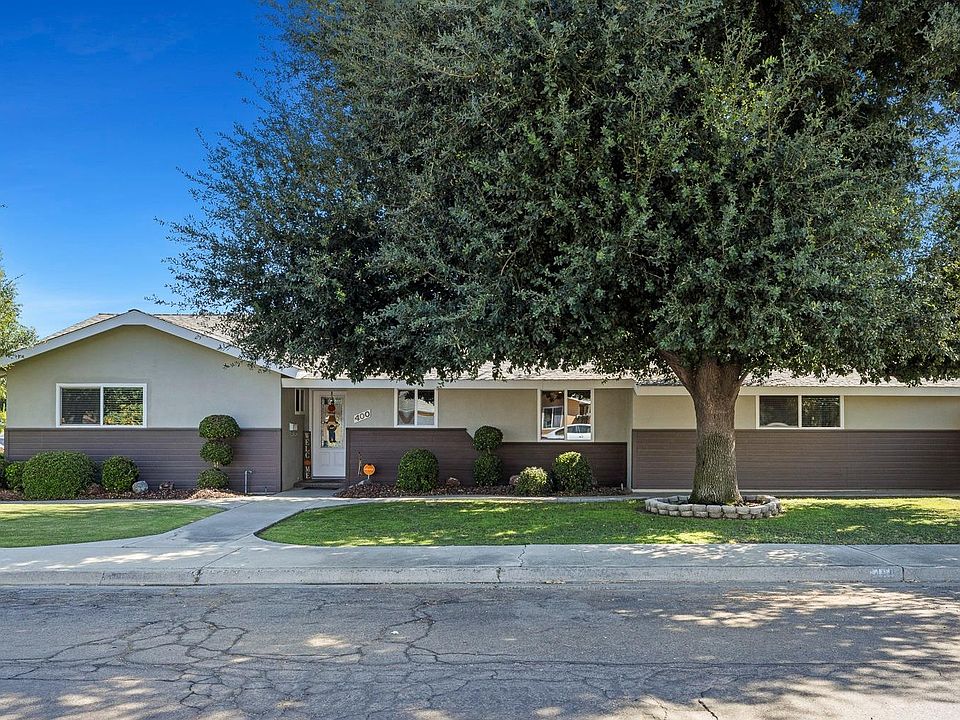 This charming 3 bedroom, 2 bathroom home offers a comfortable and inviting living space perfect for both relaxation and entertaining. The spacious living room features a cozy fireplace as well as a den, which includes a convenient 1/2 bathroom off to the side. Tile and carpet flooring, as well as ceiling fans, are found throughout the home, adding style and functionality as well as dual pane windows that fill the space with natural light. The kitchen boasts wood cabinets and tile countertops providing ample storage and workspace for all of your cooking. Copper and stainless plumbing, except a small portion of galvanized. Outside, an open breeze-way garage with alley access and RV parking offers versatility, while the storage sheds provide additional space for all your storage needs. The backyard features a pool that was recently re-plastered and updated with new tile, perfect for those hot summer days. Great curb appeal with its mature landscaping and well-maintained exterior and newer fence throughout. Located on a corner lot within walking distance of Olsen park, this home combines style, comfort, and outdoor living for a perfect family retreat. Don't miss out and call today to schedule a private tour.